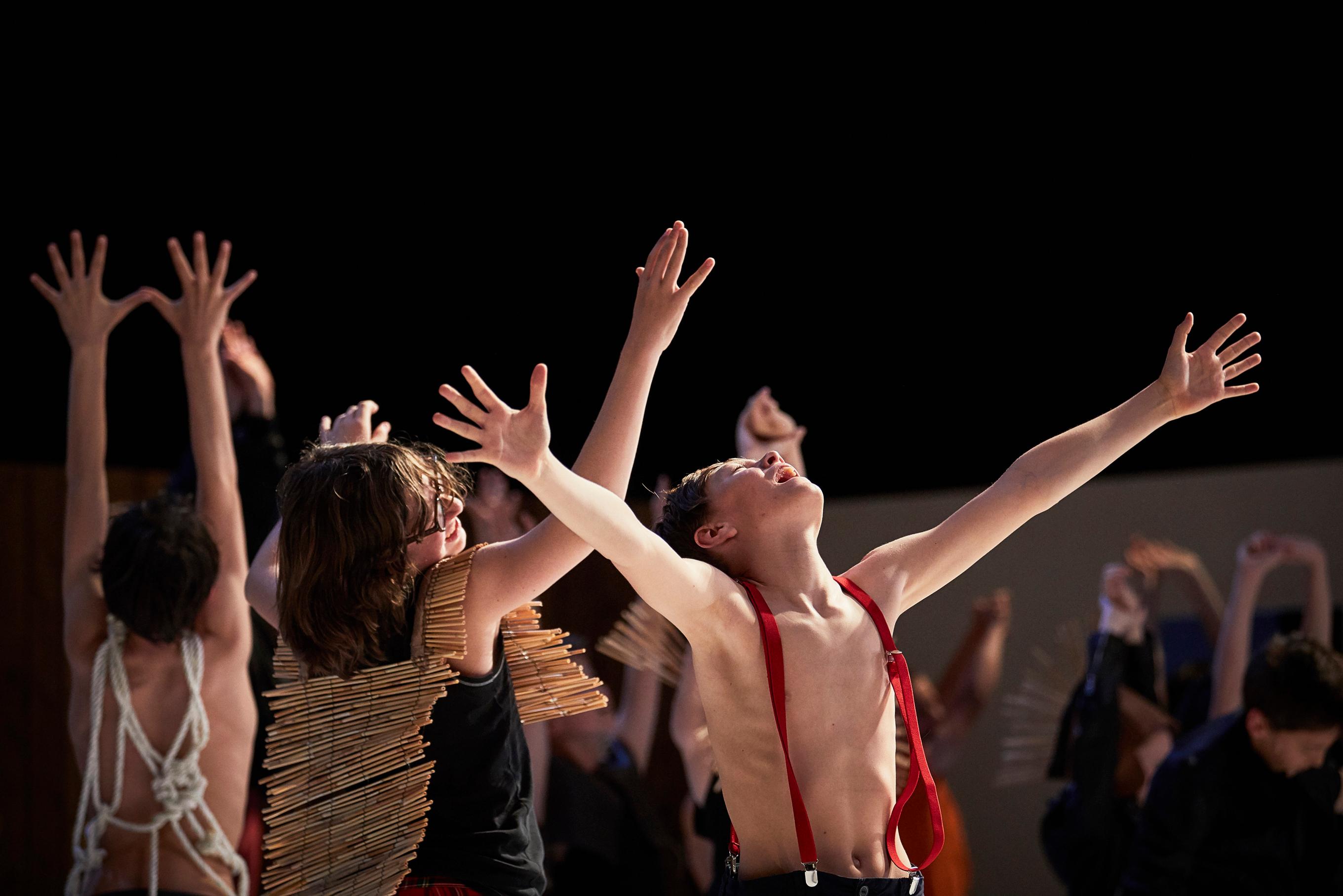 Échoués sur une île suite au naufrage du bateau qui les emmenait donner leur concert de Noël, de jeunes choristes se retrouvent livrés à eux-mêmes, sans autre occupation que d’entretenir la flamme du travail musical. Désespoir, prise de pouvoir, rébellion anti-solfège, narcissisme vocal ou répétitions enjouées mènent au noeud dramatique : la mort de la voix de l’élu… Du chœur à l’ouvrage est un opéra qui traite de l’enfance, de l’apprentissage de la musique et de ce que l’on sacrifie en grandissant. Sur le plateau, quarante enfants, sans aucune présence adulte. Ils sont les interprètes et les per son nages de l’histoire sur-mesure imaginée par Marie Desplechin. La librettiste a travaillé en s’ins pirant de leurs vies, de leurs personnalités et des modalités d’enseignement du chant choral pour su blimer la matière recueillie en un récit fantastique et initiatique, tour à tour émouvant, farcesque ou inquiétant. L’occasion pour le compositeur Benjamin Dupé d’écrire une musique qui traverse les archétypes de l’opéra - grands airs, récitatifs, chœurs dramatiques - mais qui propose aussi rituels vocaux et jeux avec l’espace, puisant son inventivité dans les infinies possibilités sonores que la voix suggère par-delà le chant. Orchestrée avec précision pour les musiciens de l’ensemble L’Instant Donné, habitant la scénographie résonante d’Olivier Thomas, la musique envahit jusqu’aux corps des enfants chanteurs, mis en mouvement et en joie de jouer par la chorégraphe Ana Gabriela Castro.